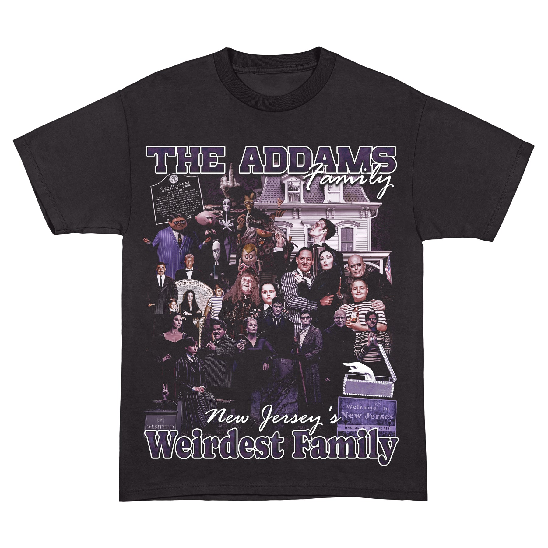 The Addams Family may be spooky, kooky, and altogether ooky, but their roots trace back to none other than New Jersey. Charles Addams, the cartoonist who first brought the macabre yet lovable family to life, was born in Westfield, NJ, where the town’s historic Victorian homes inspired the haunting charm of the Addams mansion. Netflix’s hit series Wednesday has revived the legacy for a new generation, but it all circles back to Jersey—the birthplace of the gothic humor and eerie suburban vibe that made the Addams Family timeless. This design celebrates the darkly delightful bond between the Garden State and America’s favorite creepy family.