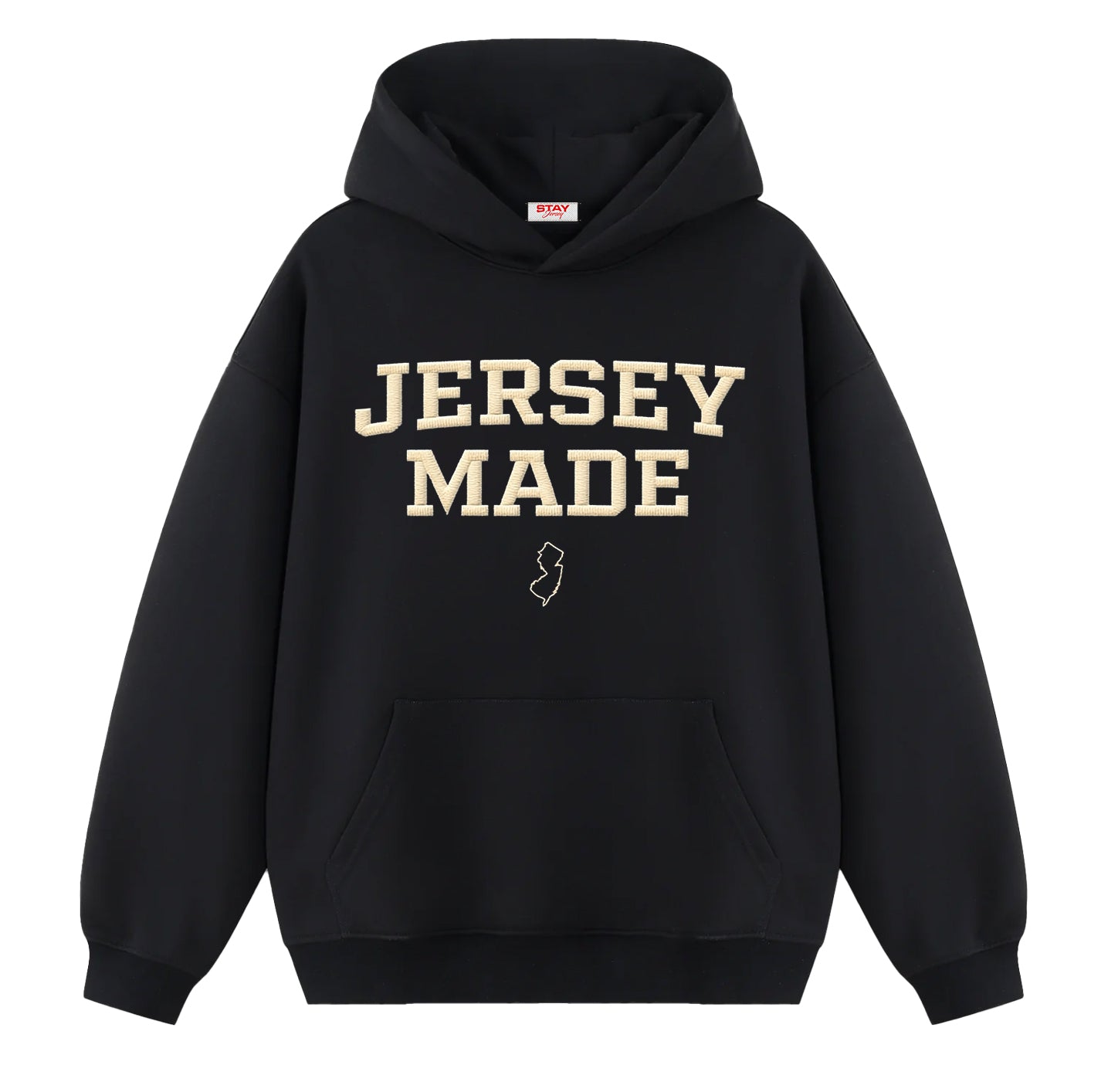 For the ones who like to keep it simple — but still want to make it clear where they’re from. The Jersey Made Classic Hoodie features a bold, centered “JERSEY MADE” front graphic with a clean NJ outline, giving it a timeless look that fits any wardrobe.